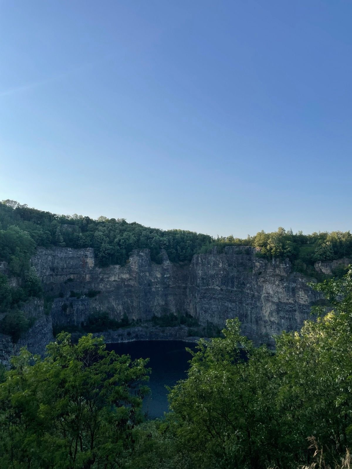 Très vite, le sentier s’élève en douceur devant une ancienne carrière, vestige minéral qui contraste avec la verdure environnante.