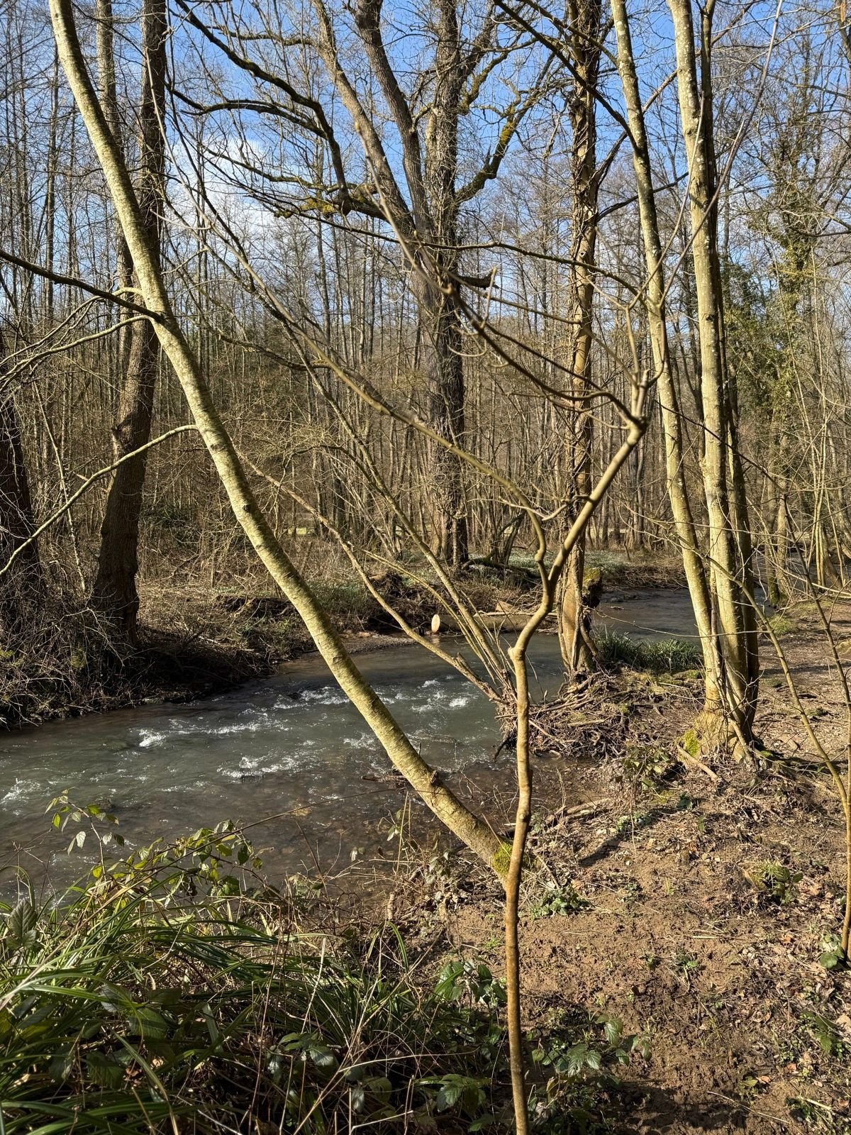 Les sentiers serpentent entre les troncs, parfois tapissés de feuilles, parfois creusés par l’eau.